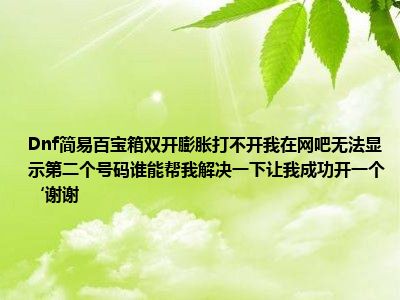 相信目前很多小伙伴对于dnf简单百宝箱双开肿么打不开?在网吧我双开显示不了第二个号。谁帮我解决,让我成功双开a` 谢谢都比较感兴趣,那么小编今天在网上也是收集了一些与dnf简单百宝箱双开肿么打不开?在网吧我双开显示不了第二个号。谁帮我解决,让我成功双开a` 谢谢相关的信息来分享给大家,希望能够帮助到大家哦。