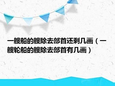 目前应该是有很多小伙伴对于一艘轮船的艘除去部首有几画方面的信息比较感兴趣,现在小编就收集了一些与一艘轮船的艘除去部首有几画相关的信息来分享给大家,感兴趣的小伙伴可以接着往下看,希望会帮助到你哦。