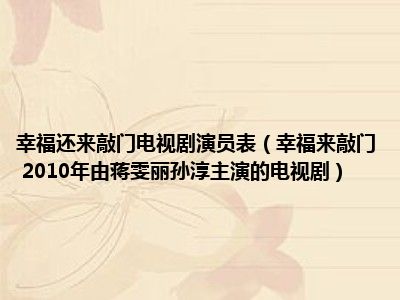 导读 目前是有很多朋友们对于幸福来敲门 2010年由蒋雯丽、孙淳主演的电视剧这个信息比较感兴趣,那么小编也是收集了一些幸福来敲门 2010年由蒋