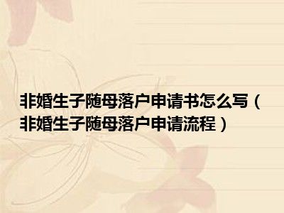 目前应该是有很多小伙伴对于非婚生子随母落户申请流程方面的信息比较感兴趣,现在小编就收集了一些与非婚生子随母落户申请流程相关的信息