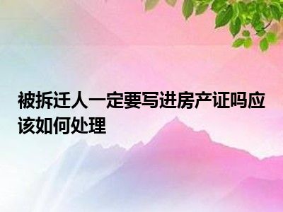 导读 目前大家应该是对被拆迁人一定要写进房产证吗应该怎么办理呢比较感兴趣的,所以今天好房网小编CC就来为大家整理了一些关于被拆迁人