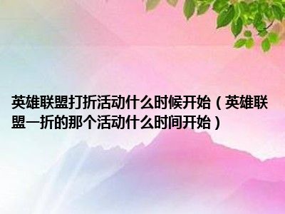 相信目前很多小伙伴对于英雄联盟一折的那个活动什么时间开始都比较感兴趣,那么小编今天在网上也是收集了一些与英雄联盟一折的那个活动什
