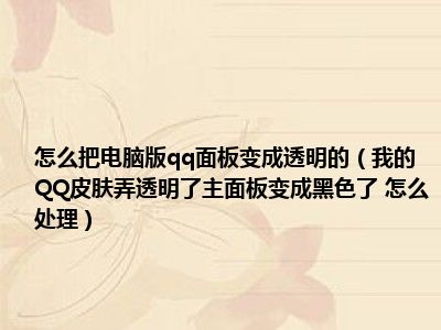 相信目前很多小伙伴对于我的QQ皮肤弄透明了主面板变成黑色了 怎么处理都比较感兴趣,那么小编今天在网上也是收集了一些与我的QQ皮肤弄透明了主面板变成黑色了 怎么处理相关的信息来分享给大家,希望能够帮助到大家哦。