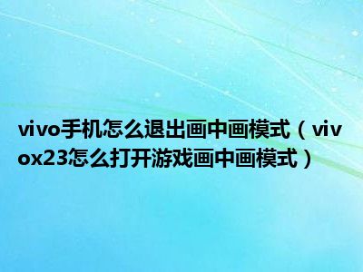 1、 vivox23怎么打开游戏画中画模式