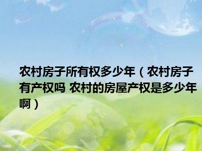 导读 目前大家应该是对农村房子有产权吗 农村的房屋产权是多少年啊比较感兴趣的,所以今天好房网小编CC就来为大家整理了一些关于农村房子有产权