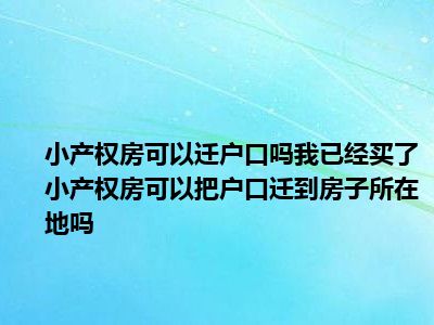 导读 目前大家应该是对小产权房能迁户口吗 已经买了小产权房子,可以把户口迁到房子所在地吗比较感兴趣的,所以今天好房网小编CC就来为大家整理