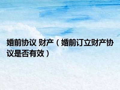 目前大家应该是对婚前订立财产协议是否有效比较感兴趣的,所以今天CC就来为大家整理了一些关于婚前订立财产协议是否有效方面的相关知识来分享给大家,希望大家会喜欢哦。