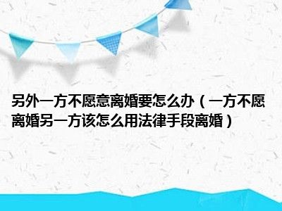 目前大家应该是对一方不愿离婚另一方该怎么用法律手段离婚比较感兴趣的,所以今天CC就来为大家整理了一些关于一方不愿离婚另一方该怎么用法律手段离婚方面的相关知识来分享给大家,希望大家会喜欢哦。