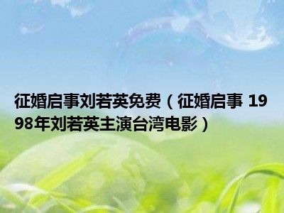 导读 目前是有很多朋友们对于征婚启事 1998年刘若英主演台湾电影这个信息比较感兴趣,那么小编也是收集了一些征婚启事 1998年刘若英主演台湾电