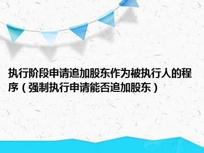 目前大家应该是对强制执行申请能否追加股东比较感兴趣的,所以今天CC就来为大家整理了一些关于强制执行申请能否追加股东方面的相关知识来分享给大家,希望大家会喜欢哦。