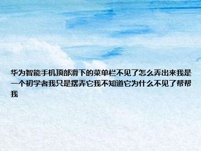 相信目前很多小伙伴对于华为智能手机上方滑下来的菜单栏不见了怎么弄出来,我是初學者,刚才瞎弄,不知道怎么就没了,救急啊!都比较感兴趣,那么小编今天在网上也是收集了一些与华为智能手机上方滑下来的菜单栏不见了怎么弄出来,我是初學者,刚才瞎弄,不知道怎么就没了,救急啊!相关的信息来分享给大家,希望能够帮助到大家哦。