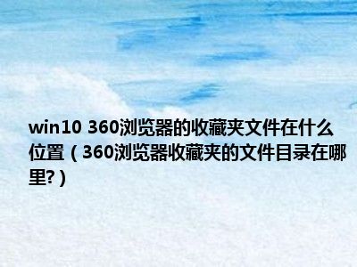 相信目前很多小伙伴对于360浏览器收藏夹的文件目录在哪里?都比较感兴趣,那么小编今天在网上也是收集了一些与360浏览器收藏夹的文件目录在哪里?相关的信息来分享给大家,希望能够帮助到大家哦。