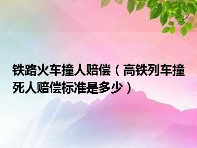 目前应该是有很多小伙伴对于高铁列车撞死人赔偿标准是多少方面的信息比较感兴趣,现在小编就收集了一些与高铁列车撞死人赔偿标准是多少相关的信息来分享给大家,感兴趣的小伙伴可以接着往下看,希望会帮助到你哦。