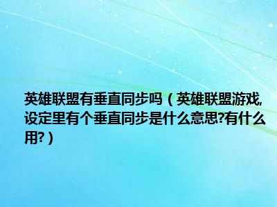相信目前很多小伙伴对于英雄联盟游戏,设定里有个“垂直同步”是什么意思?有什么用?都比较感兴趣,那么小编今天在网上也是收集了一些与英雄联盟游戏,设定里有个“垂直同步”是什么意思?有什么用?相关的信息来分享给大家,希望能够帮助到大家哦。