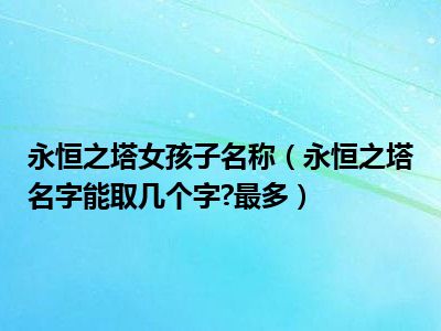 相信目前很多小伙伴对于永恒之塔名字能取几个字?最多都比较感兴趣,那么小编今天在网上也是收集了一些与永恒之塔名字能取几个字?最多相关的信息来分享给大家,希望能够帮助到大家哦。