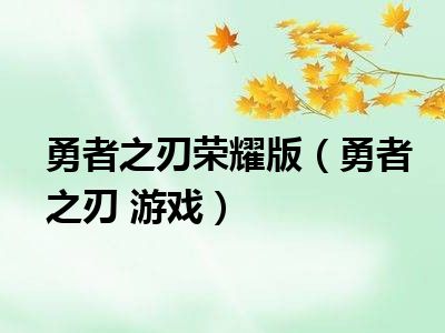 导读 目前是有很多朋友们对于勇者之刃 游戏这个信息比较感兴趣,那么小编也是收集了一些勇者之刃 游戏相关的信息来分享给大家,希望你会喜欢哦
