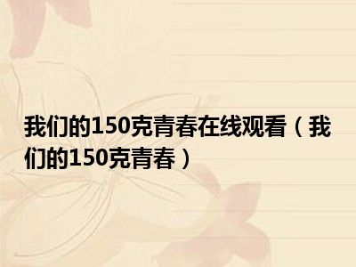 导读 目前是有很多朋友们对于我们的150克青春这个信息比较感兴趣,那么小编也是收集了一些我们的150克青春相关的信息来分享给大家,希望你会喜欢