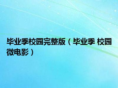 导读 目前是有很多朋友们对于毕业季 校园微电影这个信息比较感兴趣,那么小编也是收集了一些毕业季 校园微电影相关的信息来分享给大家,希望你