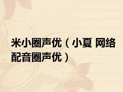 1、小夏,网络配音圈CV,女,代表作品包括恶搞模仿配音作品《哎哟爱哟单身篇》《高了个考》《春节内点事儿》等。