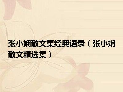 导读 目前是有很多朋友们对于张小娴散文精选集这个信息比较感兴趣,那么小编也是收集了一些张小娴散文精选集相关的信息来分享给大家,希望你会喜