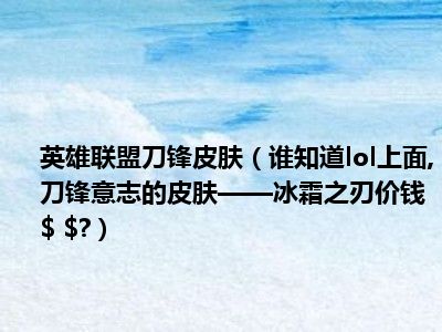 相信目前很多小伙伴对于谁知道lol上面,刀锋意志的皮肤——冰霜之刃价钱$ $?都比较感兴趣,那么小编今天在网上也是收集了一些与谁知道lol上面,刀锋意志的皮肤——冰霜之刃价钱$ $?相关的信息来分享给大家,希望能够帮助到大家哦。