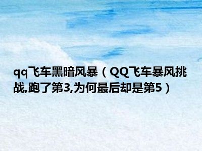 相信目前很多小伙伴对于QQ飞车暴风挑战,跑了第3,为何最后却是第5都比较感兴趣,那么小编今天在网上也是收集了一些与QQ飞车暴风挑战,跑了第3,为何最后却是第5相关的信息来分享给大家,希望能够帮助到大家哦。