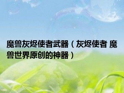 导读 目前是有很多朋友们对于灰烬使者 魔兽世界原创的神器这个信息比较感兴趣,那么小编也是收集了一些灰烬使者 魔兽世界原创的神器相关的信息
