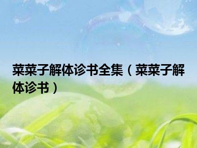 导读 目前是有很多朋友们对于菜菜子解体诊书这个信息比较感兴趣,那么小编也是收集了一些菜菜子解体诊书相关的信息来分享给大家,希望你会喜欢哦