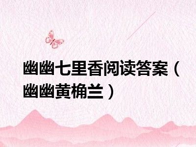 导读 目前是有很多朋友们对于幽幽黄桷兰这个信息比较感兴趣,那么小编也是收集了一些幽幽黄桷兰相关的信息来分享给大家,希望你会喜欢哦。