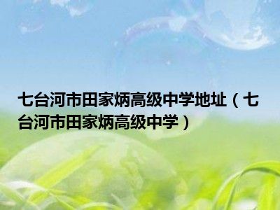 1、七台河市田家炳高级中学位于黑龙江省七台河市中心地段,始建于1986年,是黑龙江省示范性高中。