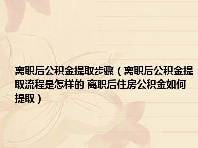 导读 目前大家应该是对离职后公积金提取流程是怎样的 离职后住房公积金如何提取比较感兴趣的,所以今天好房网小编CC就来为大家整理了一些关于离