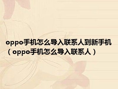 导读 1、oppo手机怎么导入联系人2、方法1:从其他手机导入3、1 通过桌面设置-进入电话簿。4、2 点击导入 导出联系人-选择从其他手机导入。5、3 然