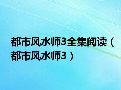 导读 目前是有很多朋友们对于都市风水师3这个信息比较感兴趣,那么小编也是收集了一些都市风水师3相关的信息来分享给大家,希望你会喜欢哦。
