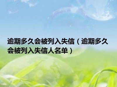 目前大家应该是对逾期多久会被列入失信人名单比较感兴趣的,所以今天CC就来为大家整理了一些关于逾期多久会被列入失信人名单方面的相关知识来分享给大家,希望大家会喜欢哦。