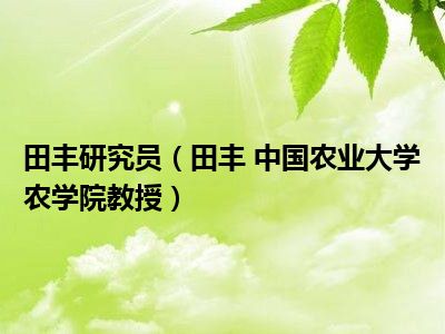 导读 目前是有很多朋友们对于田丰 中国农业大学农学院教授这个信息比较感兴趣,那么小编也是收集了一些田丰 中国农业大学农学院教授相关的信息