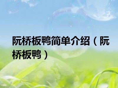 导读 目前是有很多朋友们对于阮桥板鸭这个信息比较感兴趣,那么小编也是收集了一些阮桥板鸭相关的信息来分享给大家,希望你会喜欢哦。