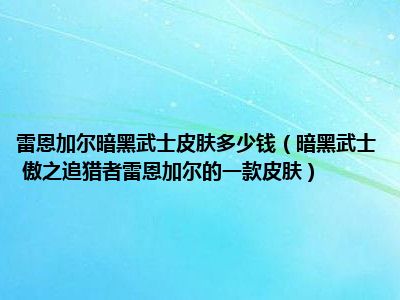 导读 目前是有很多朋友们对于暗黑武士 傲之追猎者雷恩加尔的一款皮肤这个信息比较感兴趣,那么小编也是收集了一些暗黑武士 傲之追猎者雷恩加尔