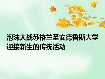 导读 目前是有很多朋友们对于泡沫大战 苏格兰圣安德鲁斯大学迎接新生的传统活动这个信息比较感兴趣,那么小编也是收集了一些泡沫大战 苏格兰圣