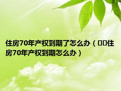 房屋产权的含义:房屋产权包括土地使用权和房屋所有权。使用权就是传统意义上所说的70年,40年,50年,这个日期的计算是从开发商拿地的那一刻开始算起的。房屋使用权到期后该怎么办是我们今日需要解答的问题。房屋所有权是指购房者通过房屋交易,取得房屋合法所有权人,可依法对所购买的房屋行使占有、使用、收益和处分的权利。不同于使用权的是,房屋的所有权是永远属于购房者所有的。简言之,70年、40年、50年土地使用期满后,土地收归国有,房屋仍属业主所有。刚在临安买了一套商品房的胡杰说:“按照先前的惯例,土地有偿使用期限届满,土地使用者需继续使用土地的,应当至迟于有偿使用期满前一年向土地行政主管部门提出申请,未申请或者申请未获批准的,期满后的土地使用权由政府无偿收回。”“届满”“未获批准”“无偿收回”这些字眼让胡杰开始担心自己房子未来的命运。一想到有一天自己倾全家之财买下的房子可能会不属于自己,胡杰就惴惴不安。之所以胡杰有这样的担心,是因为我国的土地使用权是有期限的,产权计算时间也是从开发商获得土地时开始计算,而不是从购房人获得房子的那一刻算起。**常见的也是产权时效**长的就是70年的住宅产权,而商品房住宅则多为40年或50年的产权。那么、40年、50年或者70年后,“我的房子还是我的吗?或者说,要怎样它才能继续属于我呢?”胡杰的困惑也代表了很多购房人心中的疑问。房屋产权到期该怎么办?房屋产权到期后该怎么办,目前并没有明确的法律法规政策出台来阐述这个事情的解决办法,但是社会上奉行着三种处理办法。具体如下:续费续期在房屋质量安全有保障的前提下,房屋产权到期后,房屋业主可向房屋所在地的土地管理部门提出续期申请,申请获得批准之后,重新签订土地有偿使用合同,并根据当时的签合同时的地价水平,补缴土地出让金,从而重新获得土地使用权。这也是目前产权到期默认的有效的解决方法。国家收回土地房屋,并一次性给予赔偿如果房屋到期后不申请续期或者是申请续期没有被批准的情况,国家可依法收回房屋所占土地的使用权,依附于土地之上的房屋,则会根据一定的价值和市值给予相应的赔偿。危房拆迁补偿房屋产权到期后或者是还未到期便有严重的质量安全问题,或者是被定义为危房的,则会根据相关程序走拆迁的流程。被拆迁的业主会根据拆迁补偿的标准给予房和钱的赔偿