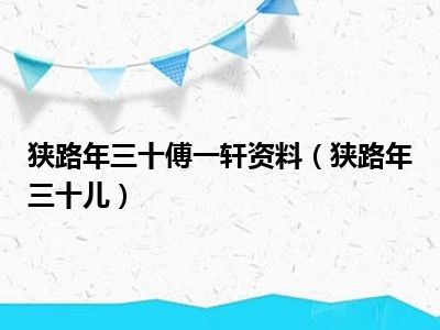 导读 目前是有很多朋友们对于狭路年三十儿这个信息比较感兴趣,那么小编也是收集了一些狭路年三十儿相关的信息来分享给大家,希望你会喜欢哦。