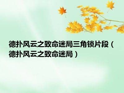 导读 目前是有很多朋友们对于德扑风云之致命迷局这个信息比较感兴趣,那么小编也是收集了一些德扑风云之致命迷局相关的信息来分享给大家,希望你