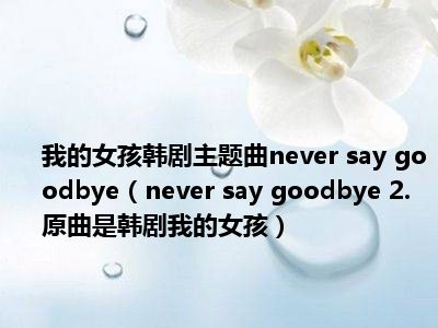导读 目前是有很多朋友们对于never say goodbye 2 原曲是韩剧我的女孩这个信息比较感兴趣,那么小编也是收集了一些never say goodbye 2 原
