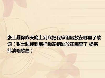 导读 目前是有很多朋友们对于张士超你到底把我家钥匙放在哪里了 杨宗纬演唱歌曲这个信息比较感兴趣,那么小编也是收集了一些张士超你到底把我家