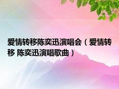 导读 目前是有很多朋友们对于爱情转移 陈奕迅演唱歌曲这个信息比较感兴趣,那么小编也是收集了一些爱情转移 陈奕迅演唱歌曲相关的信息来分享给