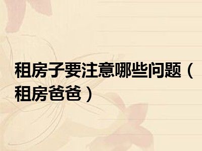 导读 目前是有很多朋友们对于租房爸爸这个信息比较感兴趣,那么小编也是收集了一些租房爸爸相关的信息来分享给大家,希望你会喜欢哦。