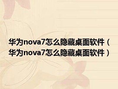 导读 1、华为nova7怎么隐藏桌面软件?2、华为nova7不支持隐藏桌面软件。但是可以设置软件应用锁,没有密码是无法进入和使用应用的。以下是具体的