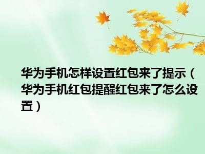 导读 1、华为手机红包提醒红包来了怎么设置?2、华为手机没有红包提醒功能,用户需要在app store下载华为的红包助手功能才能使用。具体操作步