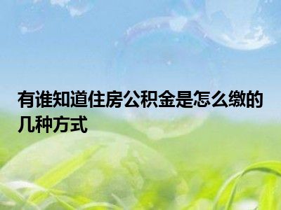 导读 目前大家应该是对谁知道住房公积金分几种方式缴存比较感兴趣的,所以今天好房网小编CC就来为大家整理了一些关于谁知道住房公积金分
