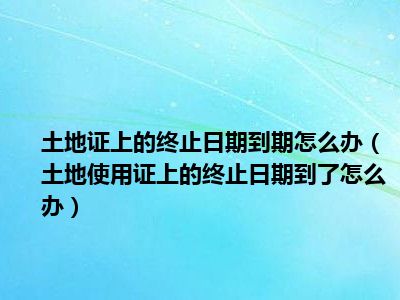 导读 目前大家应该是对土地使用证上的终止日期到了怎么办比较感兴趣的,所以今天好房网小编CC就来为大家整理了一些关于土地使用证上的终止日期到