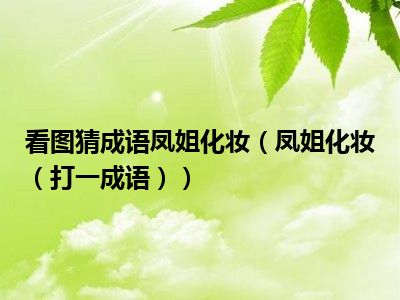 目前应该是有很多小伙伴对于凤姐化妆(打一成语)方面的信息比较感兴趣,现在小编就收集了一些与凤姐化妆(打一成语)相关的信息来分享给